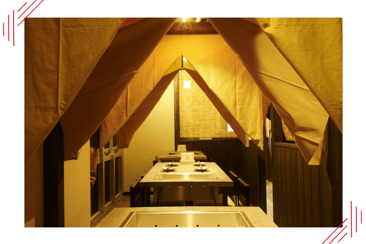 最大12名まで可能な半個室あり