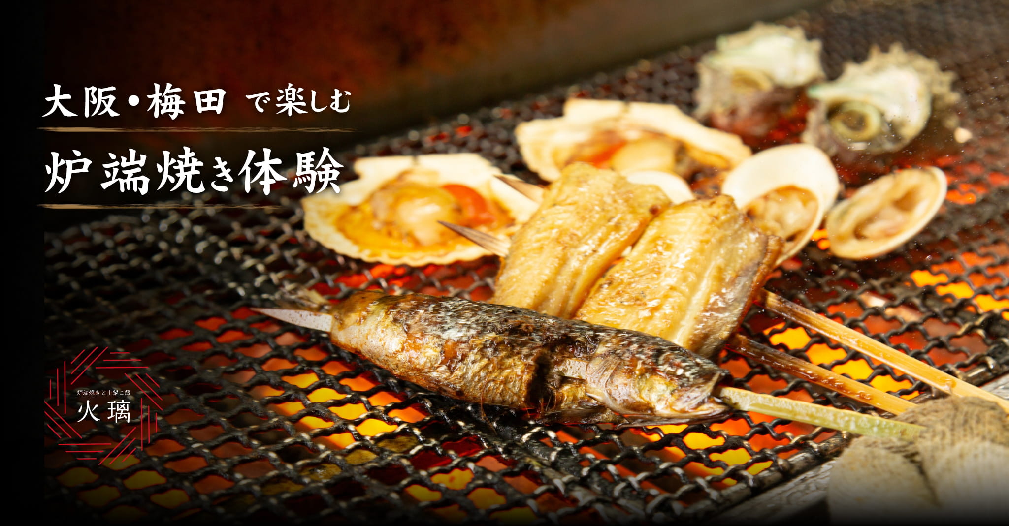 大阪・梅田のお初天神通り商店街にある「炉端焼きと土鍋ご飯食べ放題 火璃」。日本の旬食材を自分の手で香ばしく焼き上げる“炉端体験”が、この店ならではの醍醐味です。炉端焼きと炊き立て土鍋ご飯を心ゆくまで味わい、さらに日本酒の飲み放題まで一度に楽しめるコースをご提供。多言語対応のモバイルオーダーも完備しているため、海外からのお客様も安心してお楽しみいただけます。