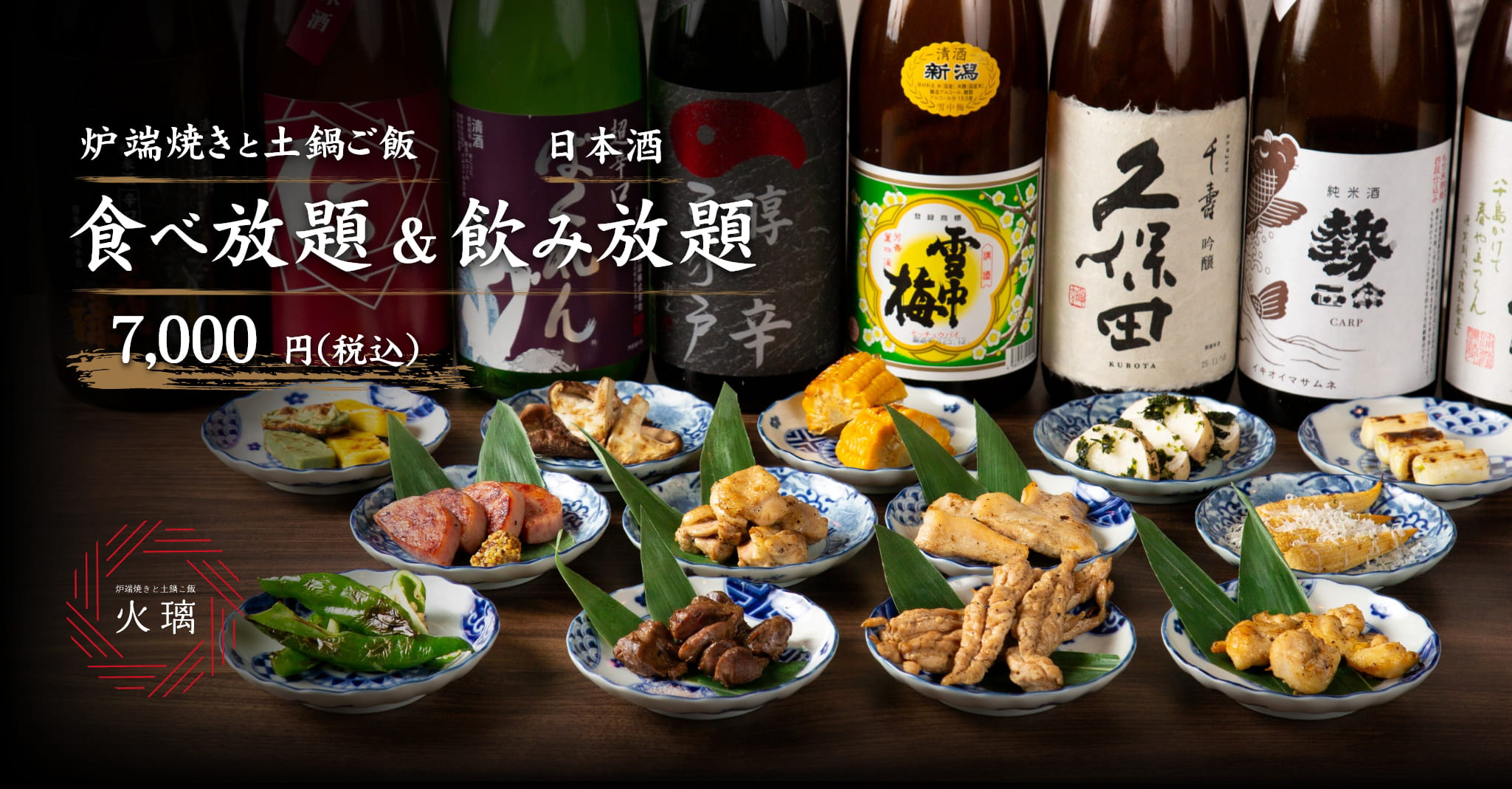 炉端焼きと土鍋ご飯食べ放題&日本酒飲み放題 7,000円(税込)